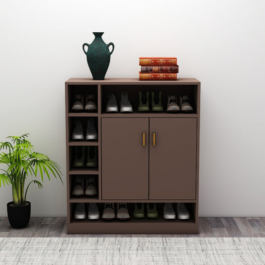 Modern Matte Brown Shoe Rack with Open and Closed Shelves – IM-10001