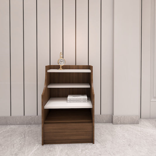 Bedside Table, Wooden & White Color Bedside Table, Side Table with Drawer & Open Shelf, Bedside Table for Bedroom, Bedside Table - EL12231