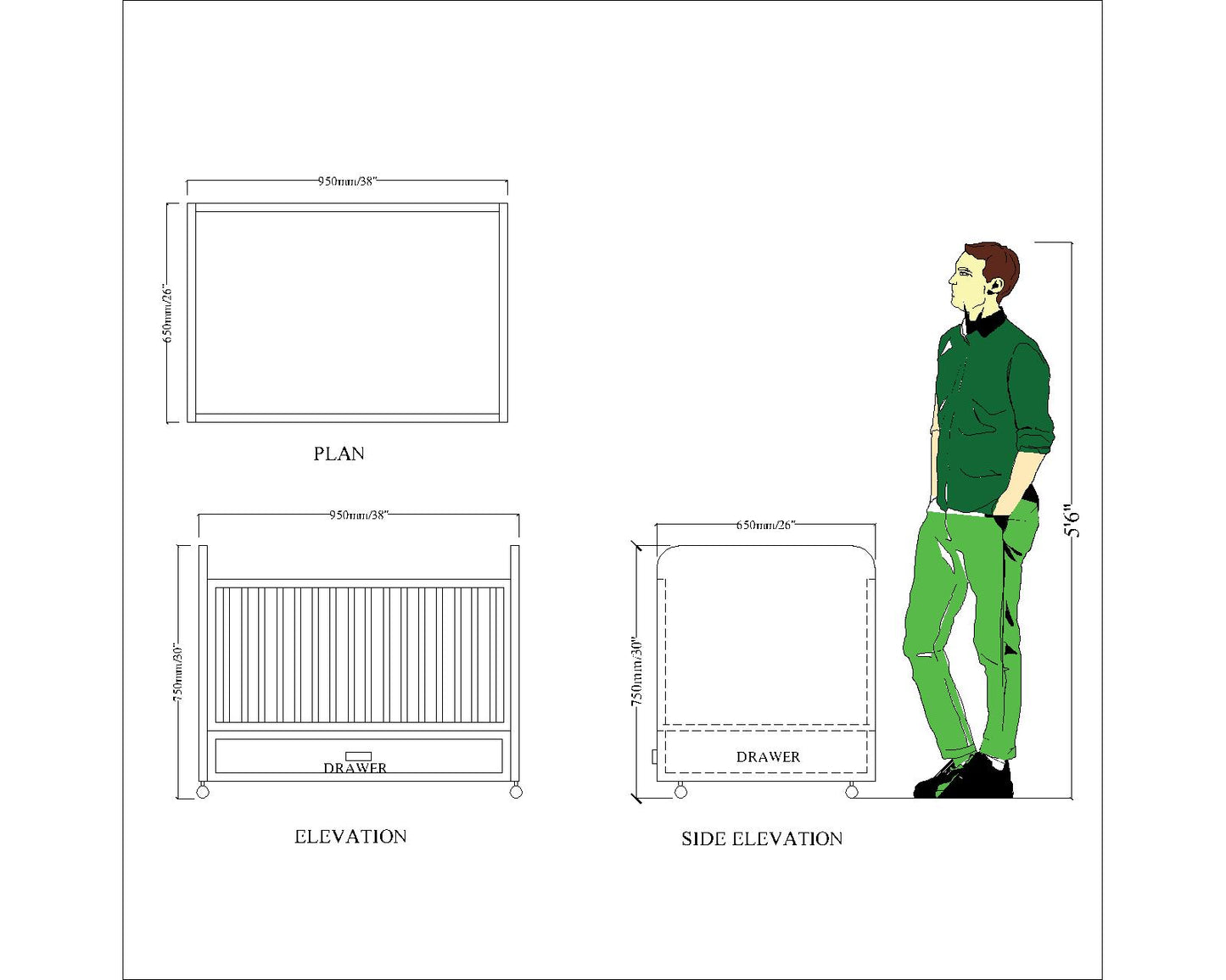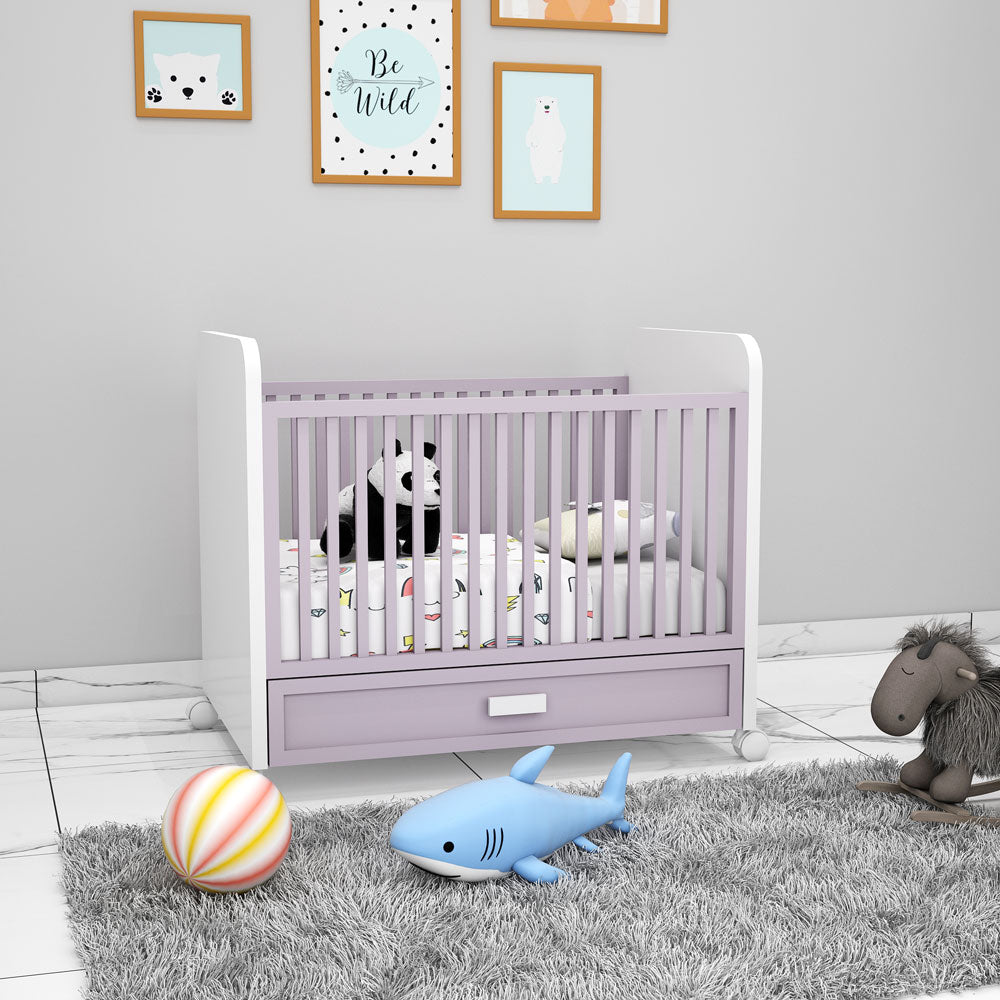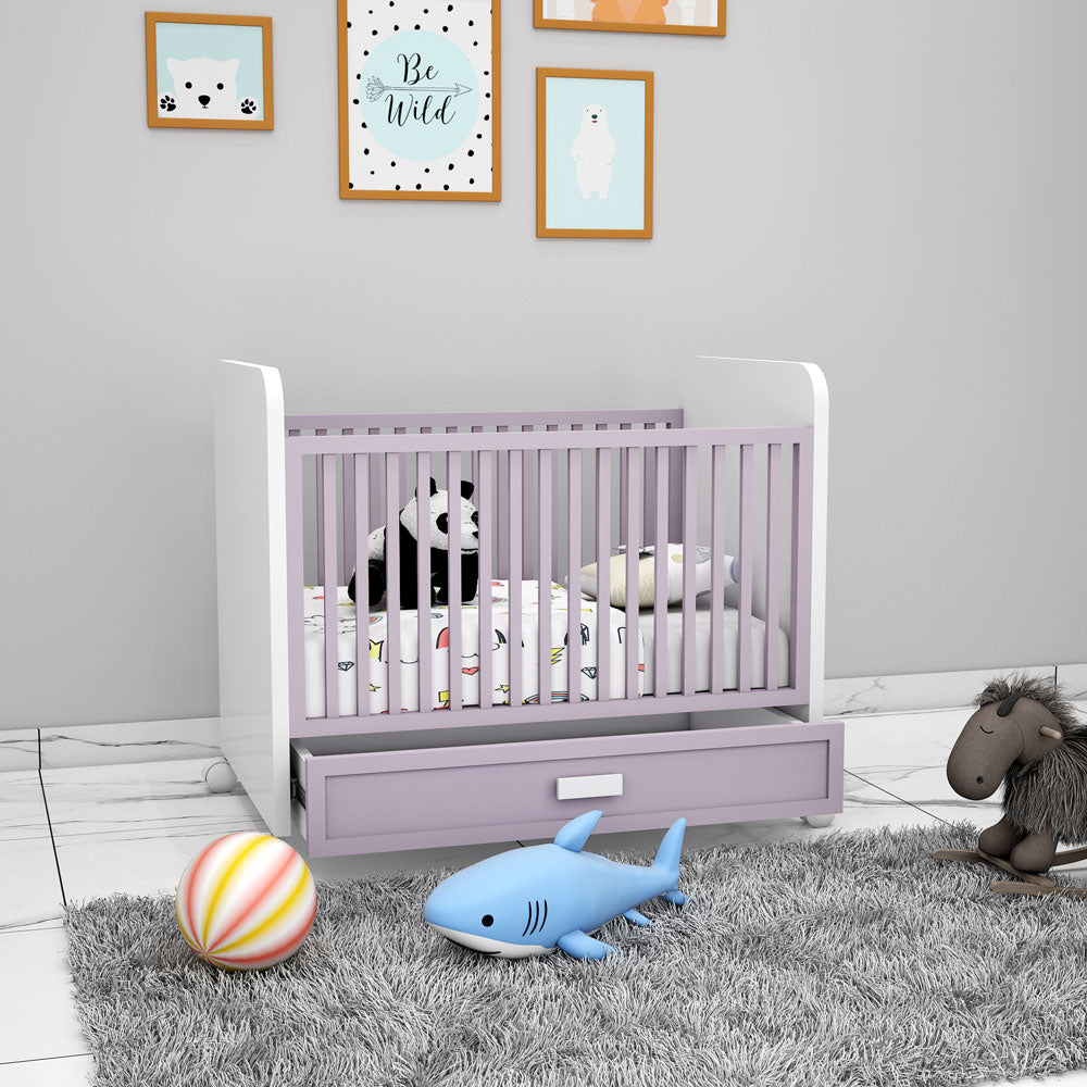 Crib , Crib in Purple Color, Crib for Kids, Crib with Drawer, Crib -eL5064