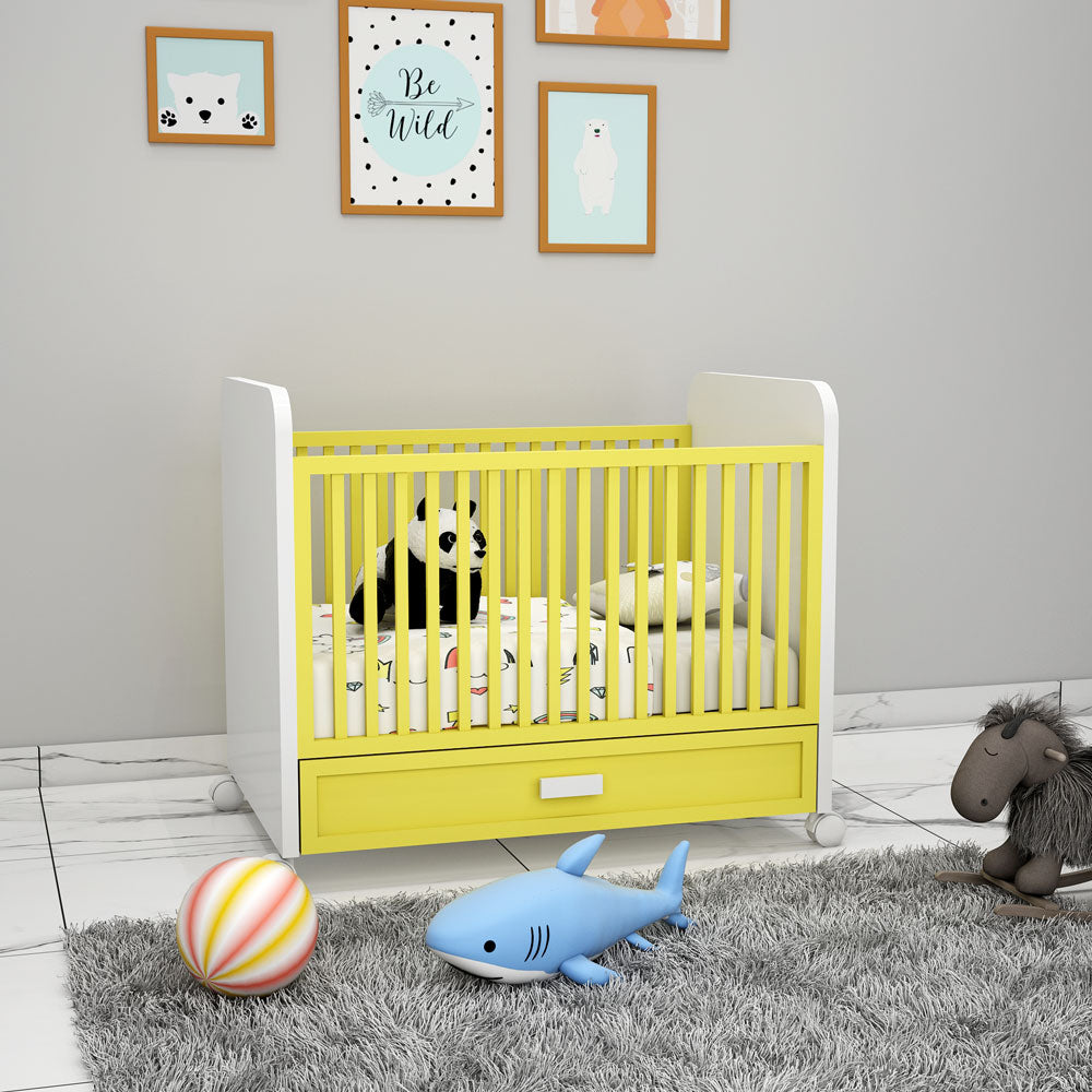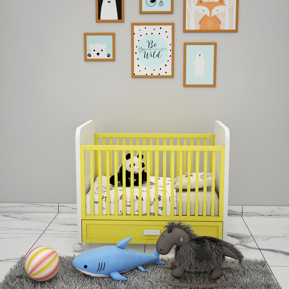 Crib , Crib in Yellow Color, Crib for Kids, Crib with Drawer, Crib -eL5063