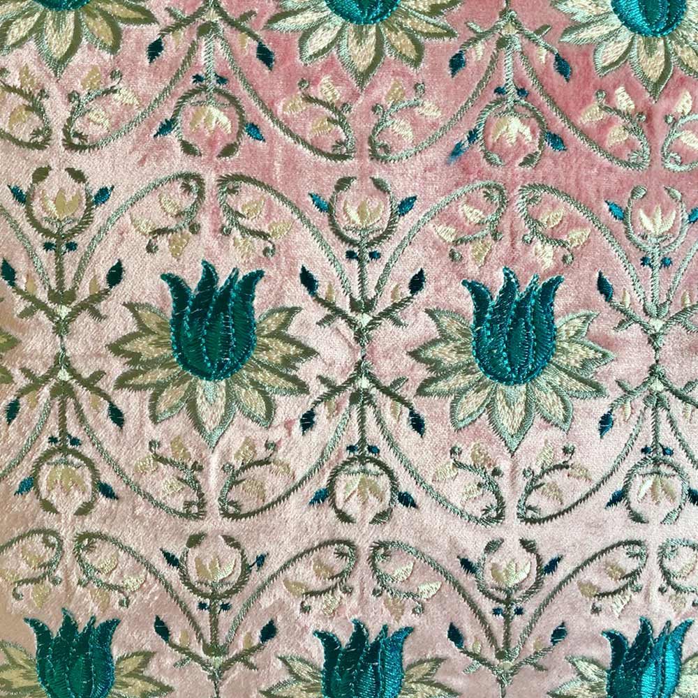 Cushion Covers(TSHVTP01L), Tulipani- Embroidered Luxury Velvet Cushion Cover- Blossom Pink- Set of 1, Cushion Covers - VT15327