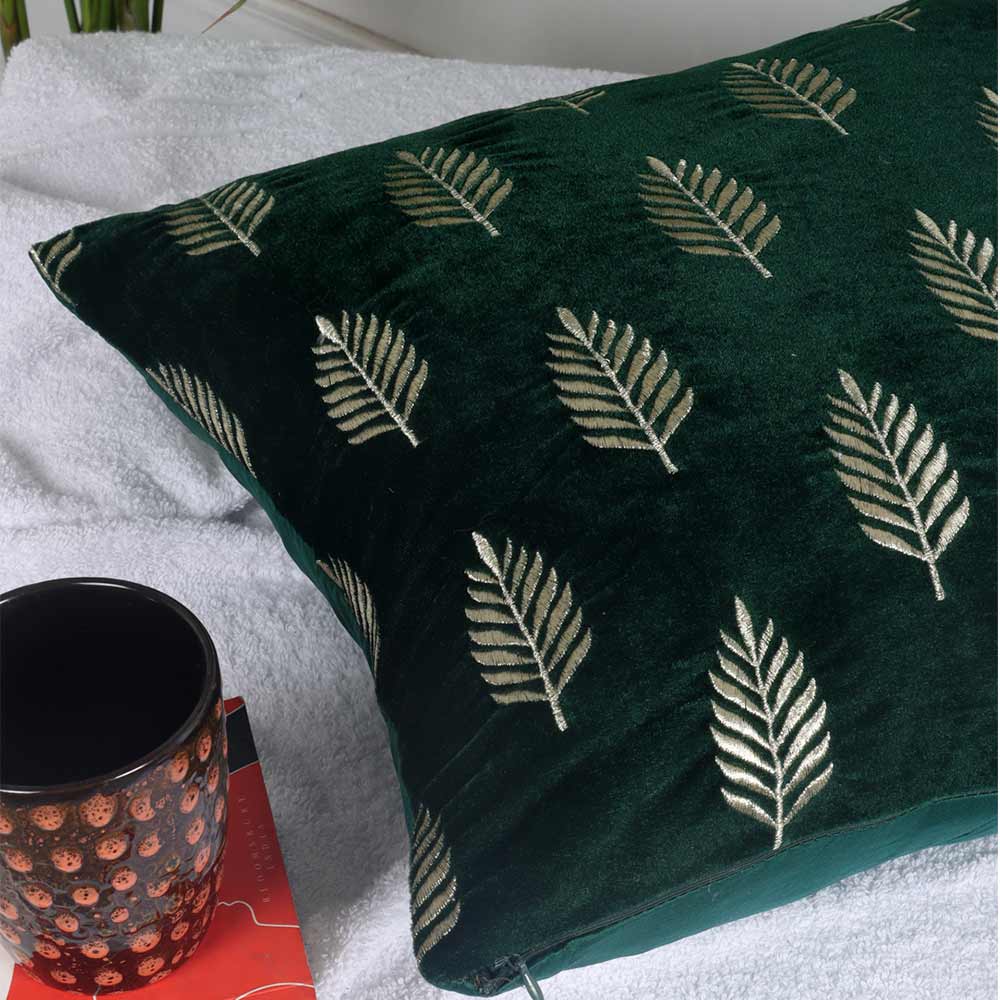 Cushion, Palm Decorative Cushion Covers, Exclusive Zari Embroidered Design Velvet Living Room Cushion Covers, 16x16inch B. Green Sofa Cushion Cover, Cushion - EL15261