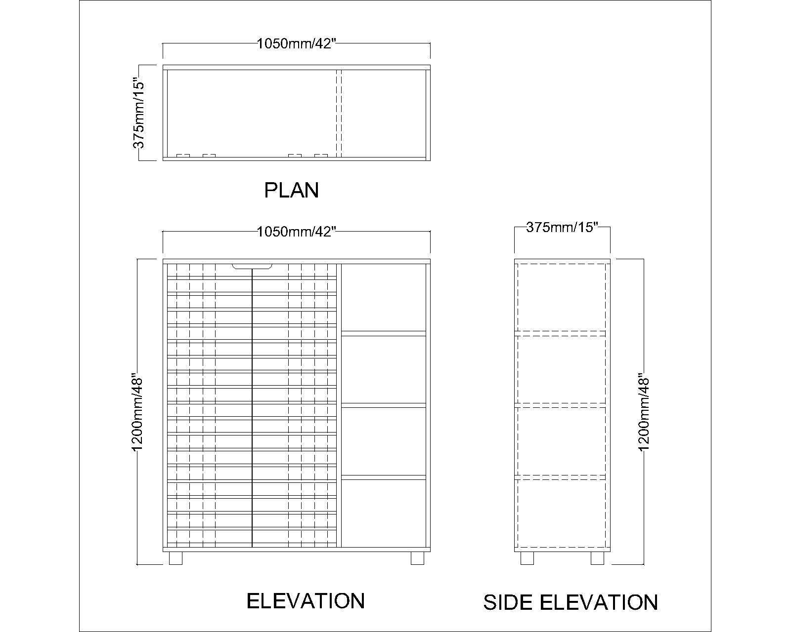 Dark Walnut Finish Shoe Cabinet with Louvered Dual Door & Open Side Shelves, Sleek Metal Legs – VT-10067