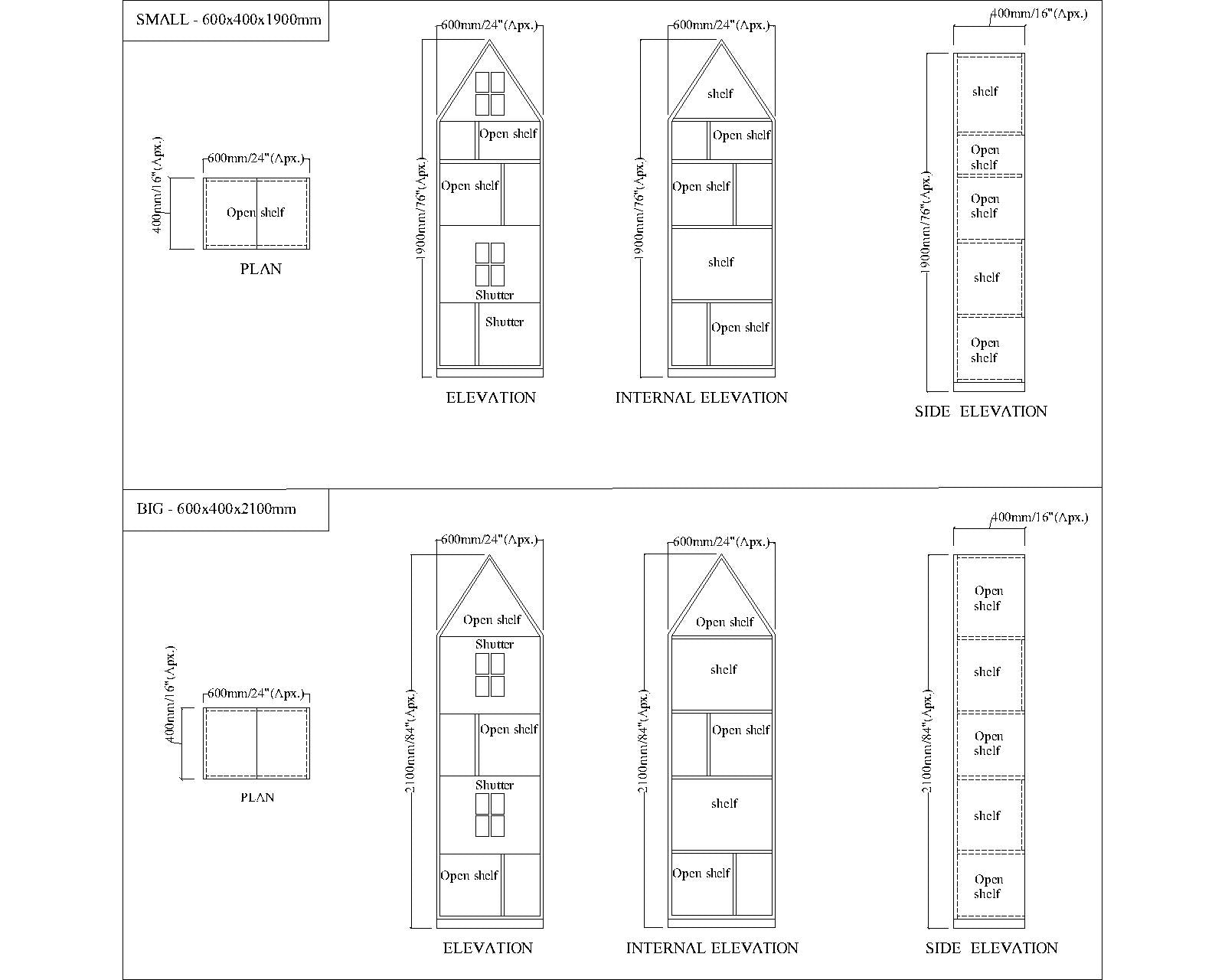 | Dimensions | Big - 600x400x2100 mm, Small - 600x400x1900 mm |