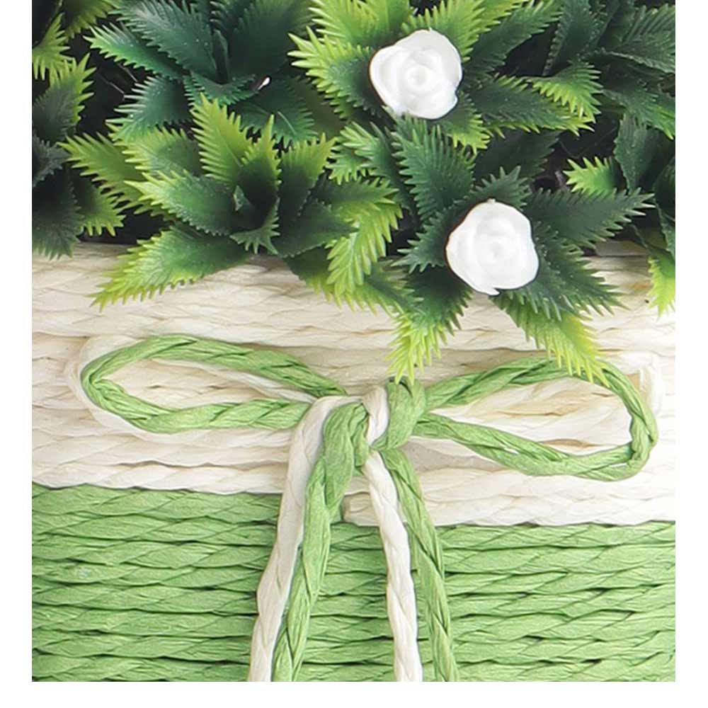 Table Decor (DE1873558-S-PM26503), Artificial Plant with Thorny Green Leaves & Small White Flowers with Pot by Foliyaj, Table Decor - IM15586