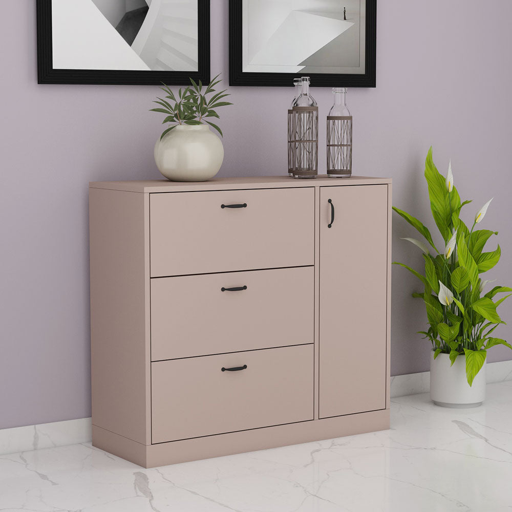 Keep your entryway neat and stylish with this modern shoe storage cabinet featuring a sleek flip-down door and two functional drawers. Designed with a warm beige finish and accented by bold black handles, this multi-compartment organizer offers a clean, contemporary look while maximizing space. The drop-front access allows for easy reach and smart storage of your footwear, while the dual drawers provide additional room for accessories or daily essentials. Perfect for compact spaces, this cabinet blends form and function to create an effortlessly organized and elegant entryway.