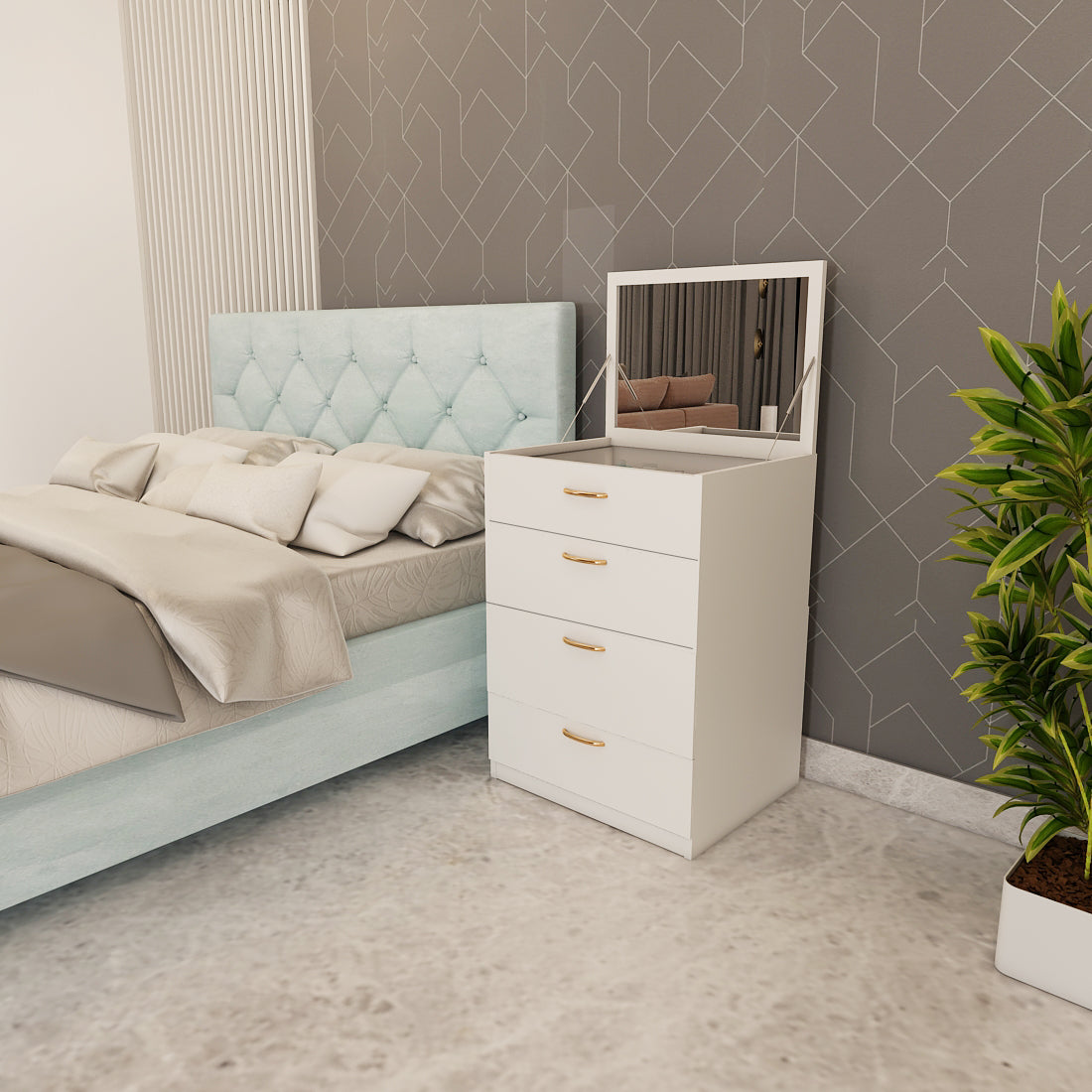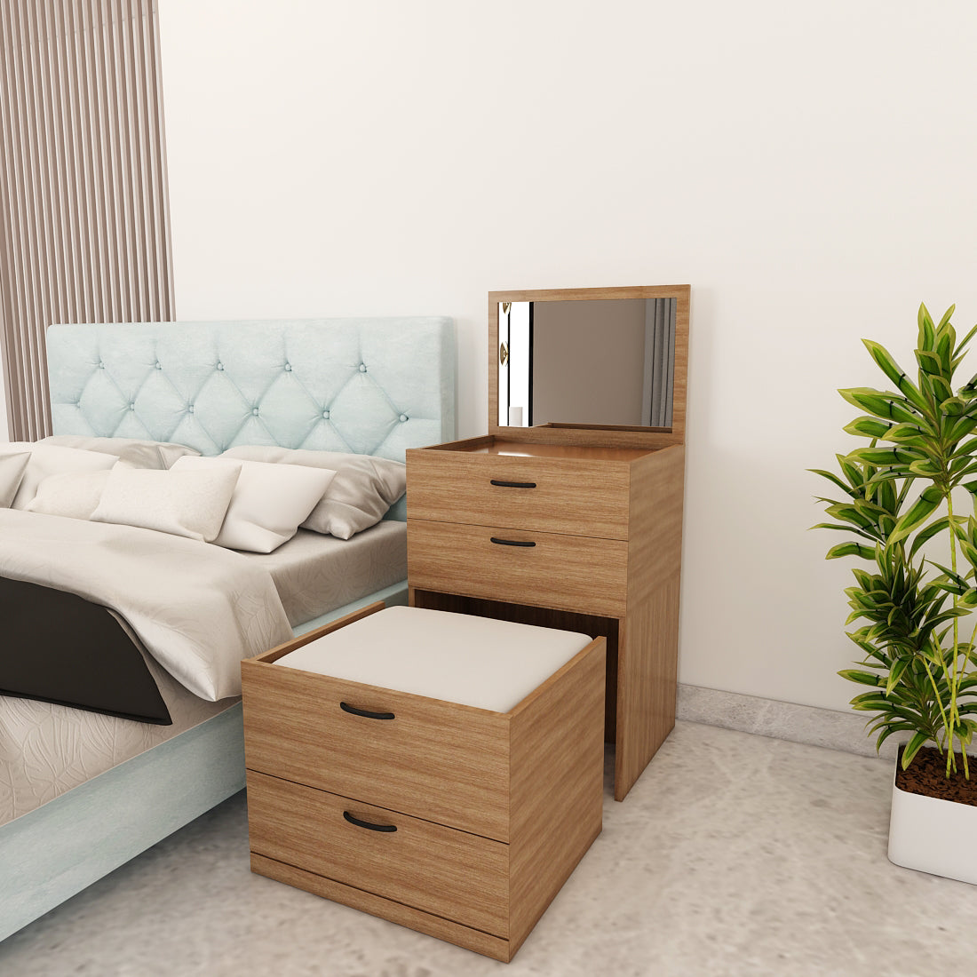 <!--td {border: 1px solid #cccccc;}br {mso-data-placement:same-cell;}-->Upgrade your bedroom with this modern wooden dressing table – the perfect blend of style, storage, and functionality for today’s compact homes. Crafted from high-quality Ply and Engineered Wood, this dressing table features a sleek, space-saving design that fits seamlessly into any room decor.It comes with a spacious drawer to store your everyday essentials like makeup, accessories, and grooming tools. The included matching stool isn’t just for comfort—it also features a built-in drawer for extra hidden storage, helping you keep your space clutter-free.Designed with a stylish finish and thoughtful structure, this dressing table with drawer and stool is ideal for small apartments, modern bedrooms, or guest rooms. Whether you’re getting ready for work or a night out, everything you need is just within reach.