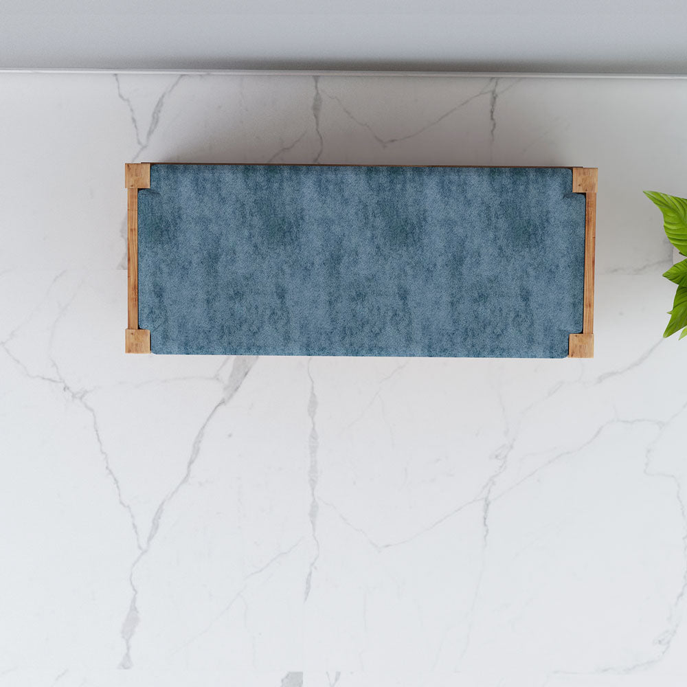 The is a practical and stylish natural wood shoe bench that features a blue cushion on top, providing a comfortable seating option for putting on or taking off shoes. This bench includes two spacious shelves underneath for storing shoes, helping to keep your entryway tidy and organized. The simple design and natural wood finish make it an easy-to-integrate piece in any home's decor.