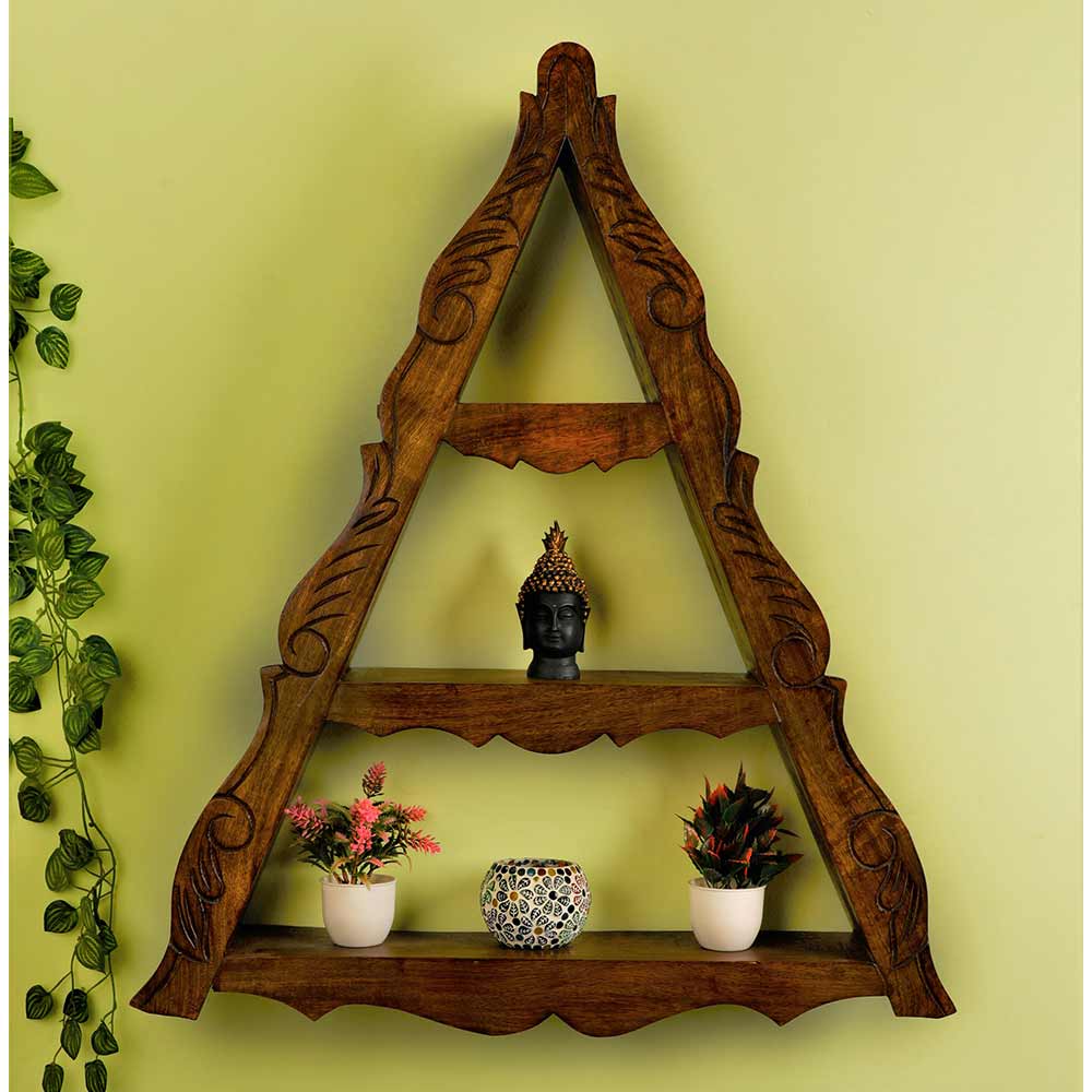 WS0003, Wall Shelf Temple Design In Coffee Colour By Disoo Fashions, Wall Shelf - IM2207
